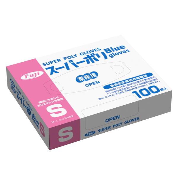 FNP38400 | フジスーパーポリグローブ ブルー S 【6000枚入り】(100枚×60箱) | 1ケースの価格¥8,316(税込) 1枚あたり1.26 S 青 外エンボス 環境にやさしいポリエチレンを使用 |
