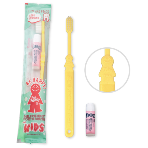 DIT131 | 子供用歯ブラシセット Mr.FRIENDRY イエロー 【250本入り】 | 1ケースの価格¥10,725(税込) 1本あたり39 歯磨き粉つき 旅館・ホテル・ペンションなどに! 3gのいちご味の歯みがき付きです。 |