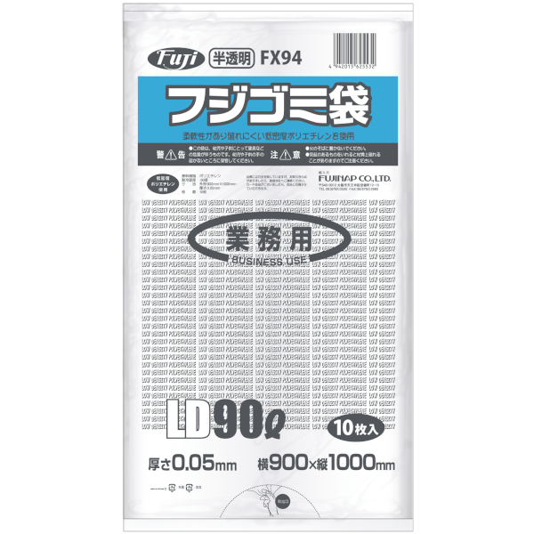 FNP62553TOL | フジゴミ袋 FX94 LD 90L 0.05 半透明 10枚 【20冊入り】 | 1ケースの価格¥5,808(税込) 1冊あたり264 90L 0.050mm厚 半透明 LD 横900×縦1000mm |